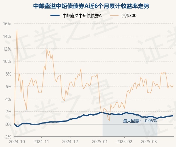 本站消息,3月27日,中邮鑫溢中短债债券A最新单位净值为1.0808元,累计净值为1.0808元,较前一交易日上涨0.0%。历史数据显示该基金近1个月上涨0.21%,近3个月下跌0.28%,近6个月上涨1.28%,近1年上涨3.14%。该基金近6个月的累计收益率走势如下图: